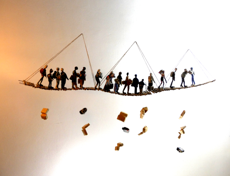 Chaque mobile, est une histoire qui se raconte dans un espace en perpétuelle recomposition. Des personnages semblent y tester sans relâche leur présence au monde, s’appuyant sur l’air pour trouver la légèreté d’un mouvement spontané.