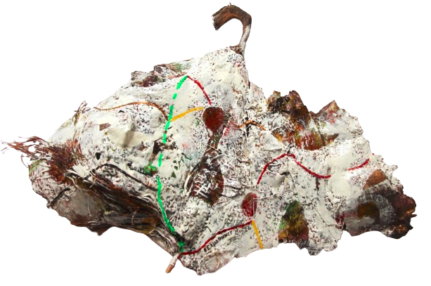 Les objets de récupération occupent une place centrale dans mon oeuvre. Systématiquement recouverts de signes et de couleurs, ces rebuts de nos sociétés de consommation sont transformés, sublimés jusqu’à l’émergence d’une nouvelle vie.