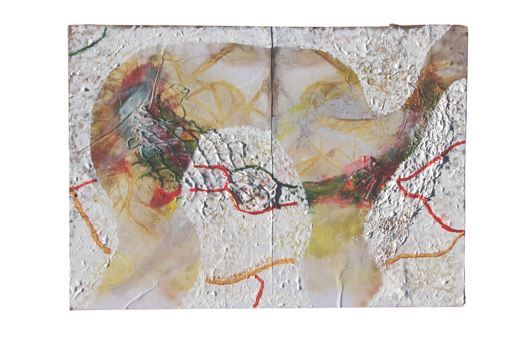 De même que nous essayons de trouver une voie dans ce monde chaotique, je cherche, parmi les éléments aléatoires et émotionnels accumulés sur un support, un chemin, une image en utilisant ma mémoire.