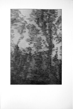 Paysages contre nature; dessiner des lieux communs : des lieux banals, non pas le milieu dit naturel mais plutôt le lieu contre-nature ou s’entrelacent des affects complexes, de l’ordre du temps humain, du souvenir de la nature dans ses matériaux tels que les pierres, les arbres. Ce n’est pas une idée de nature emprunte de nostalgie ni une vision contemporaine culpabilisée, mais le constat banal d’une cohabitation, où la culture tient sa place et où les prédateurs se guettent ou s’ignorent…