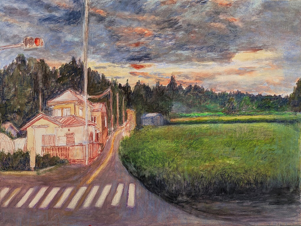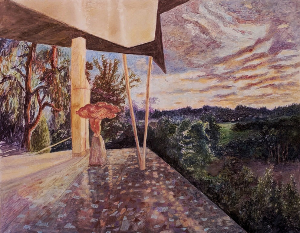Loin d'être ici pyrogravure sur toile 39x29cm 2025