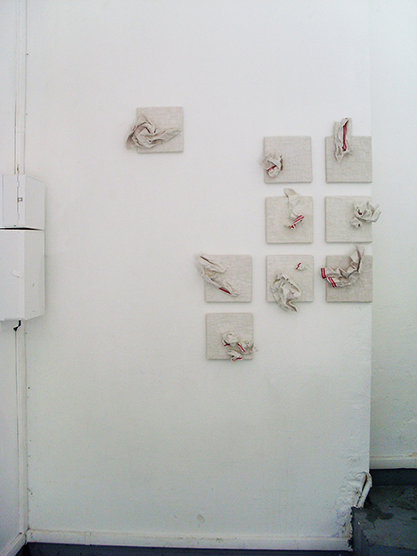 A la lisière entre art et geste artisanal, elle matérialise les notions de conservation et de transmission par des processus de collecte, fragmentation, enveloppement et transformation du tissu.