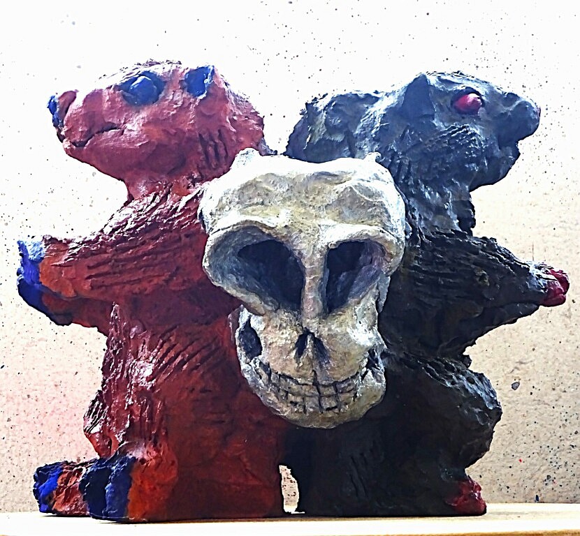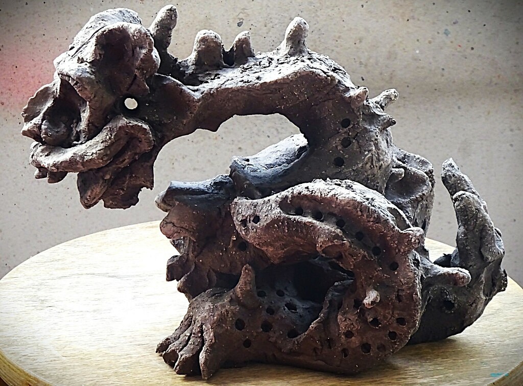 Les sculptures exposent plus frontalement cette tension. Crânes, hybridations, figures troublées ou déformées rendent visible ce que l’on préférerait ignorer — la perte, la démence, la transformation irréversible. Elles ne raillent pas la beauté ; elles montrent combien elle est menacée.