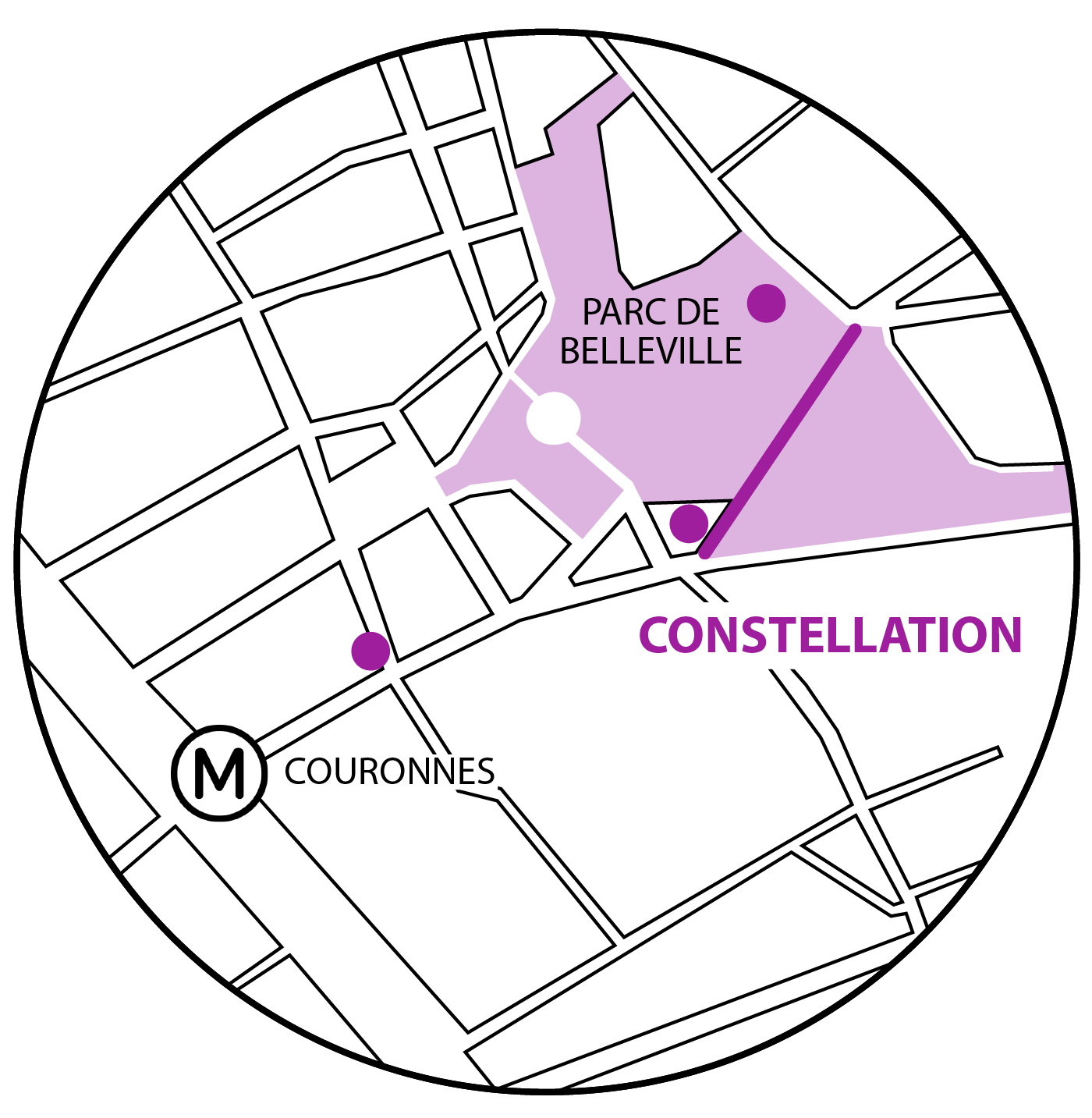 Le projet Constellation fait écho au maillage riche et varié d’artistes et de collectifs de plasticien.nes qui constituent les Ateliers d’Artistes de Belleville et fondent son identité.