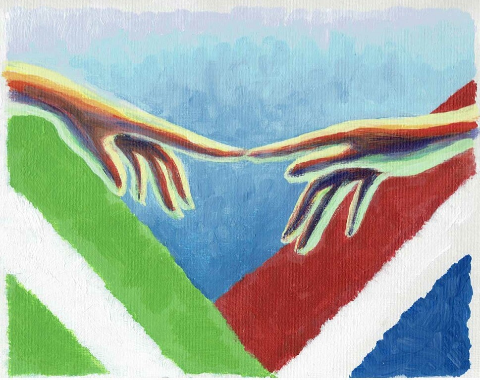 Willem van Hest, Anatomy of an encounter 1, peinture acrylique sur toile, 24 x 30 cm